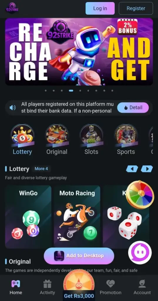 It is also recognized as a new earning app in Pakistan that combines fun and real income opportunities. With its simple design, users do not need technical skills to get started. It is packed with features like regular bonuses, lottery options, and fast payouts that keep users engaged. Whether you are a beginner or experienced player, 92Strike APK offers something exciting for everyone.